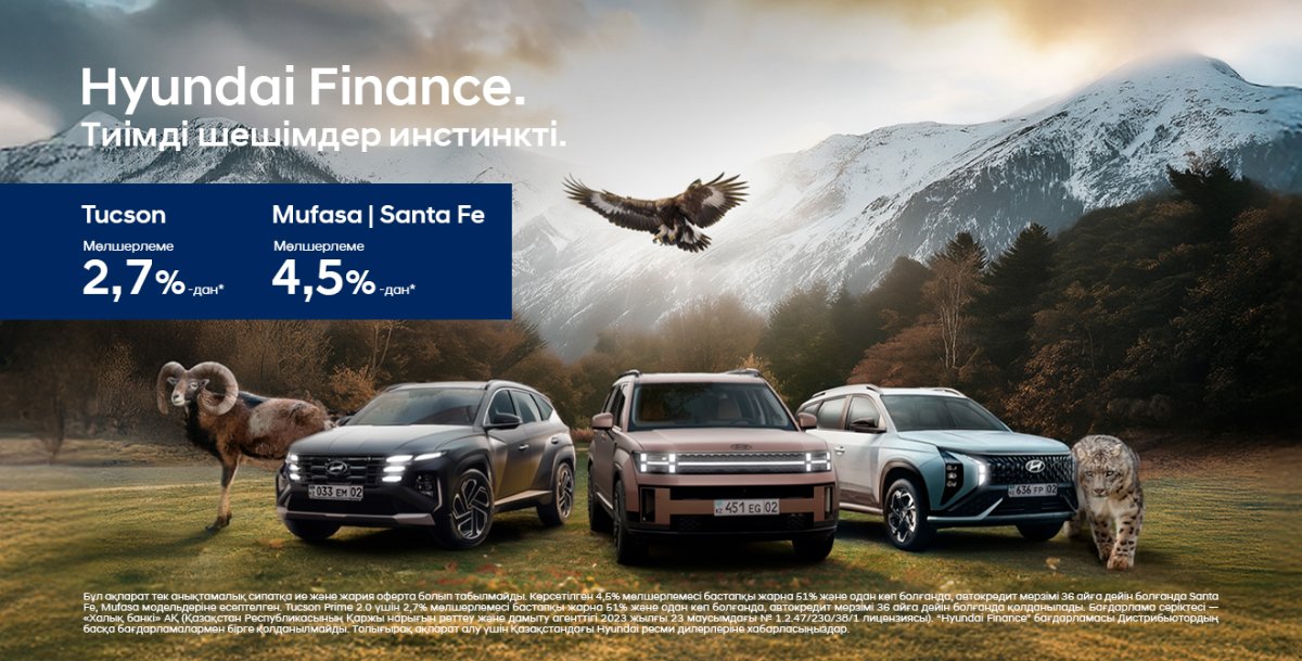 Tucson бестселлері, технологиялық Mufasa және кең флагман Santa Fe енді жеңілдетілген автокредит шарттарымен қол жетімді.